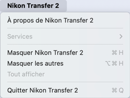 Menu [Nikon Transfer 2] (macOS uniquement)