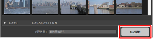 [転送開始]ボタンをクリックすると、メモリーカード内すべての画像の転送が開始します。