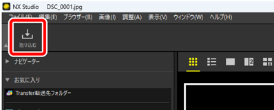 NX Studioが起動している場合、[取り込む]ボタンをクリックするとNikon Transfer 2が起動します。