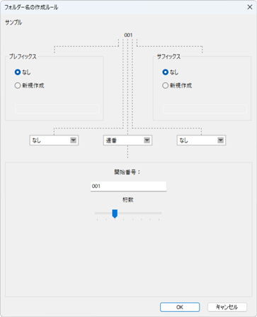 - 設定中はダイアログ上部の[サンプル]に、作成するフォルダー名のサンプルが表示されます。サンプルは項目の設定内容に連動して表示されます。