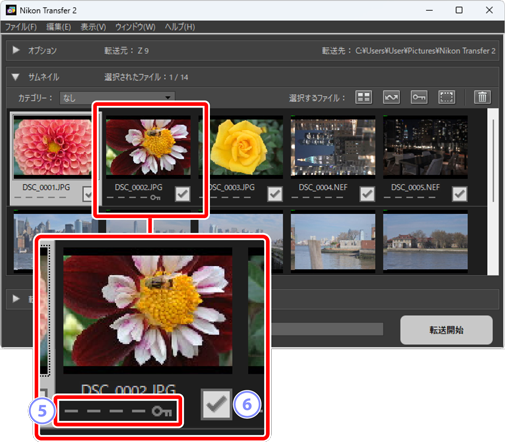 :カメラでプロテクトされている画像のみ選択して転送対象に設定します。