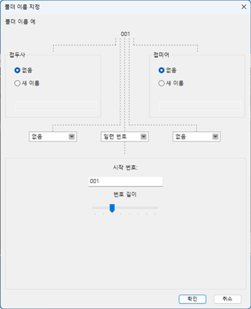 - 선택한 규칙에 따라 생성한 이름 예가 대화 상자의 맨 위의 [폴더 이름 예] 필드에 나타납니다. 규칙을 편집할 때 샘플이 자동으로 업데이트됩니다.