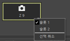 아이콘을 클릭하여 슬롯을 선택합니다. 선택한 슬롯에 있는 카드의 화상이 [썸네일] 창에 표시됩니다.