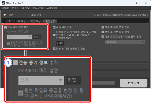 이 옵션을 선택하여 다운로드하는 동안 XMP/IPTC 메타데이터를 파일에 추가합니다.