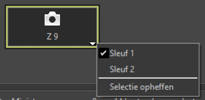 rechtsonder in het camerapictogram om een sleuf te kiezen; de foto’s op de kaart in de gekozen sleuf worden in het paneel [Miniaturen] weergegeven.