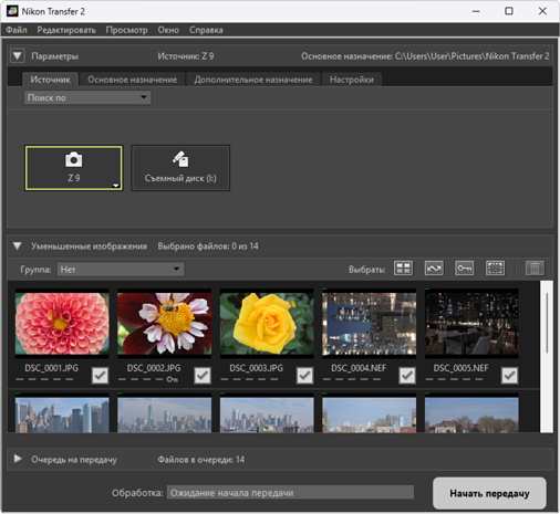 Основные шаги, связанные с использованием Nikon Transfer 2, описаны ниже.