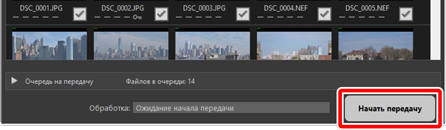 Щелкните [Начать передачу], чтобы начать загрузку снимков с карты памяти.