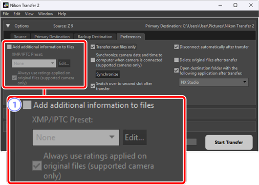 - [Always use ratings applied on original files (supported camera only) (Använd alltid betyg tillämpade på originalfiler (endast kamera som stöds))]: Välj detta alternativ för att betygsätta bilderna med prioritet på de betyg som tilldelats med kameran över betygssättningen i XMP/IPTC-förinställningarna.