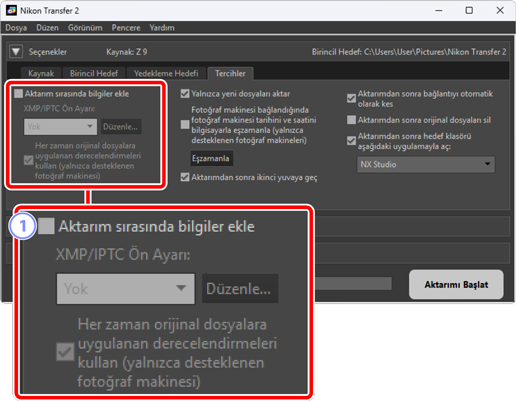 İndirme sırasında dosyalara XMP/IPTC meta verileri eklemek için bu seçeneği seçin.