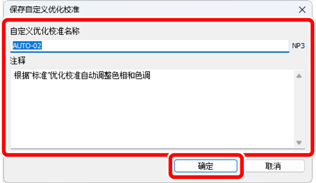 在[保存自定义优化校准]对话框中,命名该自定义优化校准,添加注释,然后单击[确定]。