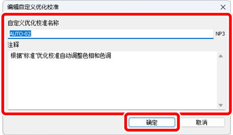 在[编辑自定义优化校准]对话框中,命名该自定义优化校准并添加注释,然后单击[确定]。