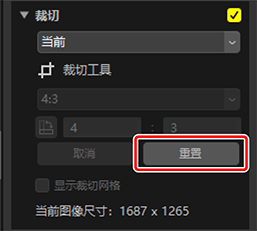 裁切照片后,[继续]更改为[重置]。单击[重置]可将裁切重置。
