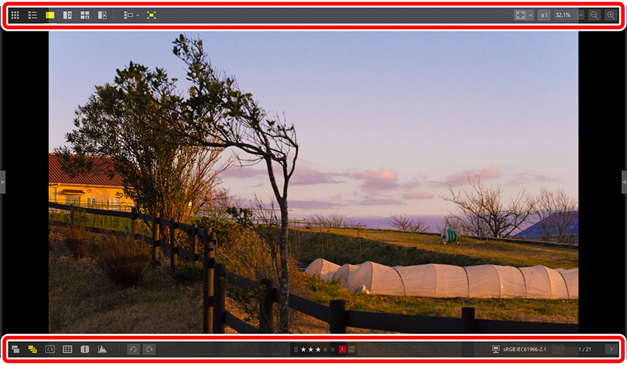 在图像查看器、“2/4图像”或编辑前后对比视图中选择全屏查看可在所选视图中全屏显示当前照片。
