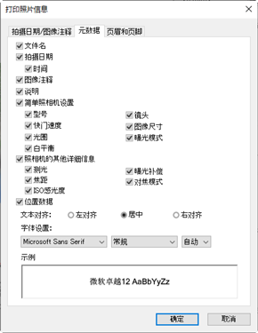 - [字体设置]:选择用于打印元数据的字体、字形和字号。