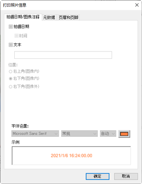 - [字体设置]:选择用于打印日期/时戳的字体、字形、字号及颜色。