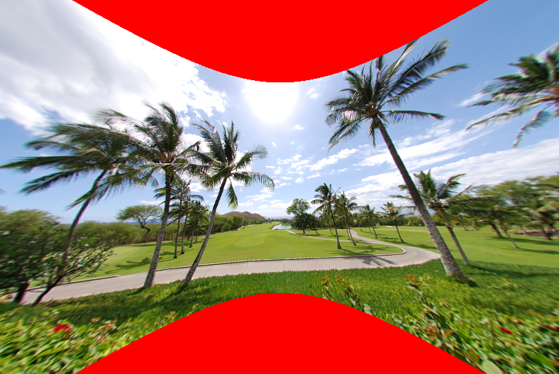 将对以全画幅鱼眼镜头所拍摄的照片进行裁切以匹配照相机的画角,留下一个以垂直通过图像中心的一条线为中心的区域。