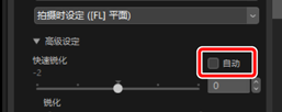 - 调整[快速锐化]会同时调整[锐化]、[中等锐化]和[清晰度]以获得均衡的效果。选择高值可获得较高的锐利度,选择低值则可获得较大的柔和度。