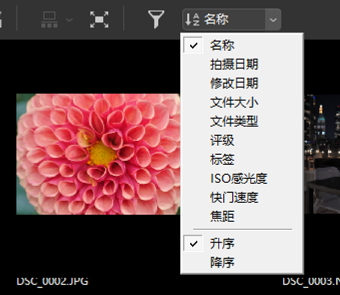将查看区域或胶片显示窗格中的缩略图进行排序。