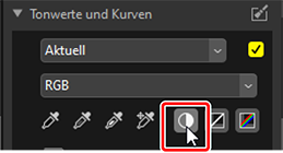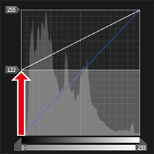 Ziehen Sie in der Anzeige [Tonwerte und Kurven] den unteren Anker der Tonwertkurve nach oben in den mittleren Bereich des Diagramms.
