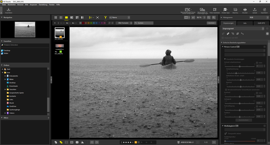 Das aktuelle Bild kann bewertet werden, indem Sie die gewünschte Anzahl der Sterne in der Symbolleiste unten im Anzeigebereich anklicken. Klicken Sie erneut auf den gleichen Stern, um die Bewertung aufzuheben (0 Die untere Symbolleiste).