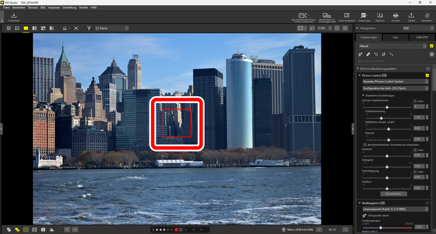 - Das Fokusmessfeld kann auf jedem Bild angezeigt werden, das mit einer COOLPIX A oder einem an einer D-SLR-Kamera oder spiegellosen Kamera von Nikon angebrachten Objektiv mit CPU aufgenommen wurde.
