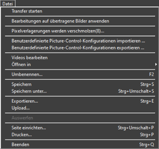 - Benutzerdefinierte Picture-Control-Konfigurationen exportieren, die in NX Studio als Dateien gespeichert wurden (0 Benutzerdefinierte Picture-Control-Dateien exportieren).