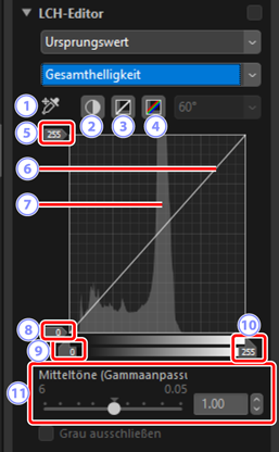 - Klicken Sie auf diese Taste und dann auf das Bild, um einen Punkt zur Gesamthelligkeit hinzuzufügen, der dem Wert des Pixels unter dem Cursor entspricht.
