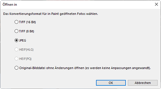 - [HEIF (HLG)]/[HEIF (PQ)]: Nur bei Bildern verfügbar, die im Tonmodus HLG aufgenommen wurden (mittels Kamera mit Tonmoduswahl).