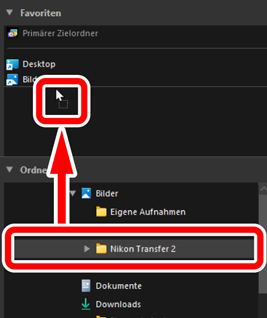 Fügen Sie Ordner zu den Favoriten hinzu, indem Sie sie aus der [Ordner]-Liste dorthin ziehen.