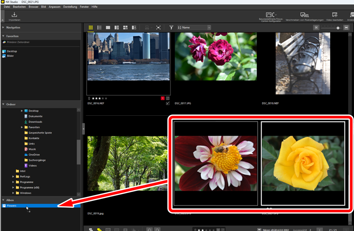 Ziehen Sie die Bilder in das im Schritt 1 erstellte Album.