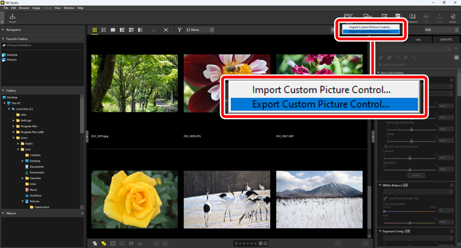 Custom Picture Controls saved in NX Studio can be exported as files.