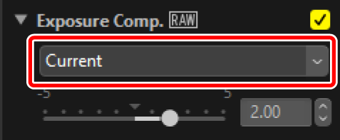 - [Exposure Comp.]*: Adjust exposure (0 The Exposure Compensation Tool).