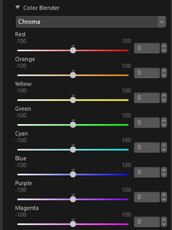 Adjust chroma (saturation) for each color. This also reflects the result of that adjustment if the [Chroma] parameter under [Color] was adjusted.