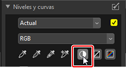Arrastre el anclaje inferior de la curva de tonos hasta la región media del gráfico en la pantalla [Niveles y curvas].