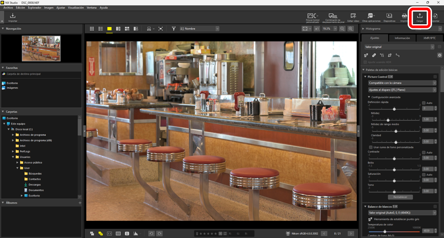 Ajuste la configuración de las imágenes cargadas desde NX Studio.