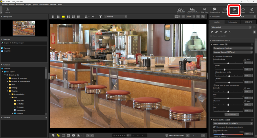 Para imprimir imágenes en una impresora conectada al ordenador, elija las imágenes y haga clic en [Imprimir] en la barra de herramientas.