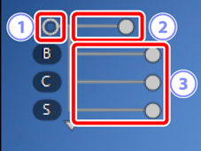 ). - Los controles deslizantes de ajuste predeterminados son [B] (brillo), [C] (contraste) y [S] (saturación).