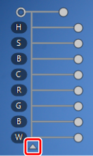 Puede hacer clic en el triángulo de la parte inferior o superior de los controles deslizantes para alternar entre el modelo de color actual ([BCS], [RGB] o [TSB]) y [Todos].