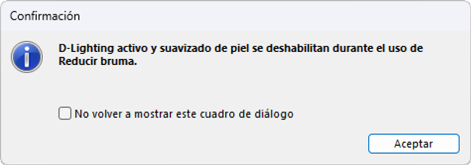 Habilitar [Reducir bruma] desactiva [D-Lighting activo] y [Suavizado de piel].