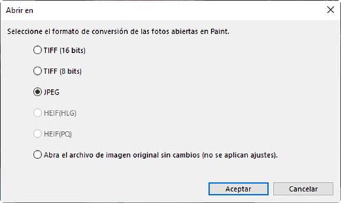 - Las imágenes no se abrirán si el formato seleccionado no es compatible con la aplicación seleccionada.