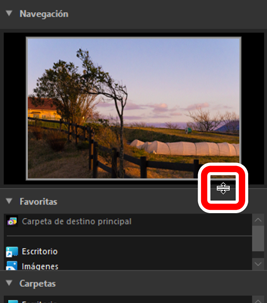Podrá ver u ocultar las subpaletas [Navegación], [Favoritas], [Carpetas] y [Álbumes] haciendo clic en los botones