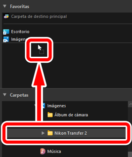 Añada carpetas a favoritos arrastrándolas desde la lista [Carpetas].