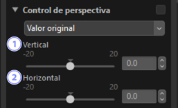 Ajuste la perspectiva horizontal o verticalmente en cantidades de −20 a +20.