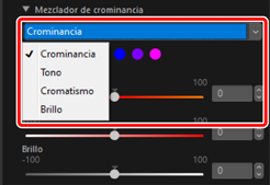 Ajuste el brillo para cada color. Esta opción también refleja el resultado de dicho ajuste si ajustó [Brillo] en [Crominancia].