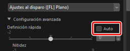 Al seleccionar el Picture Control [Automático], los ajustes pueden configurarse en el intervalo de [A−2] a [A+2].