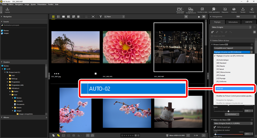- NP3 : fichier de Picture Control personnalisé compatible appareils photo hybrides de la gamme Z, D6 et D780.