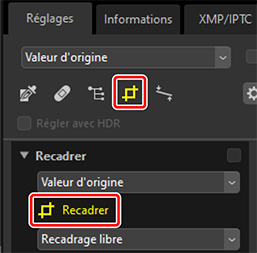 ) l'outil Recadrer. Vous pouvez également cliquer sur l'icône de l'outil, située en haut de la palette Réglages.