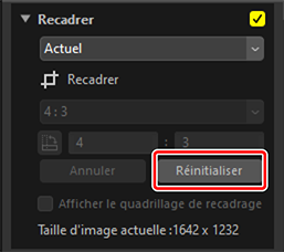 Une fois la photo recadrée, [Traiter] est remplacé par [Réinitialiser]. Cliquez sur [Réinitialiser] pour réinitialiser le cadrage.