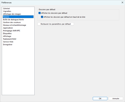 Choisissez si les dossiers par défaut sont inclus dans la liste [Favoris].