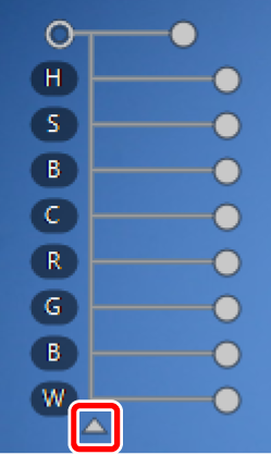 - [Tous] : afficher les curseurs de [Teinte] ([H]), [Saturation] ([S]), [Luminosité] ([B]), [Contraste] ([C]), [Rouge] ([R]), [Vert] ([G]), [Bleu] ([B]), et [Chaleur] ([W]).